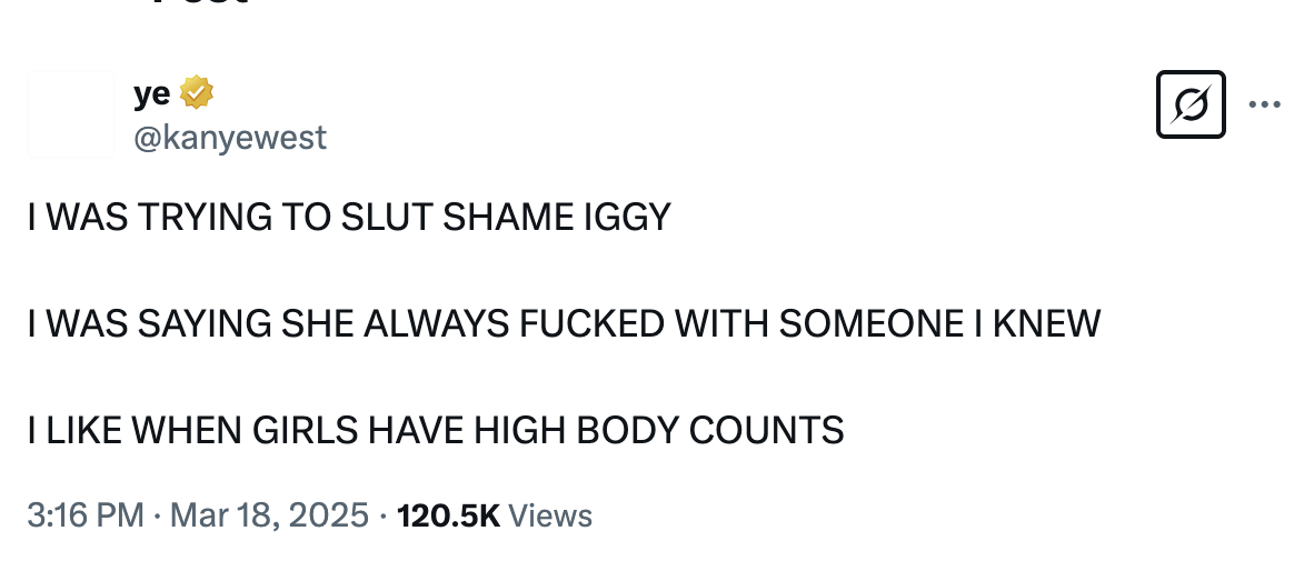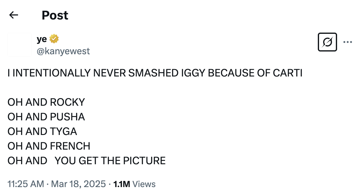 Après que Carti ait marqué l'ex-femme de Ye Kim Kardashian sur ses histoires Instagram et a écrit: «Tell ma nièce North, envoyez-moi une chanson», le fondateur de Good Music a déclenché un assaut de messages en colère sur X et a comparé la demande à demander si Iggy si son fils avec Carti pouvait faire une chanson avec lui.