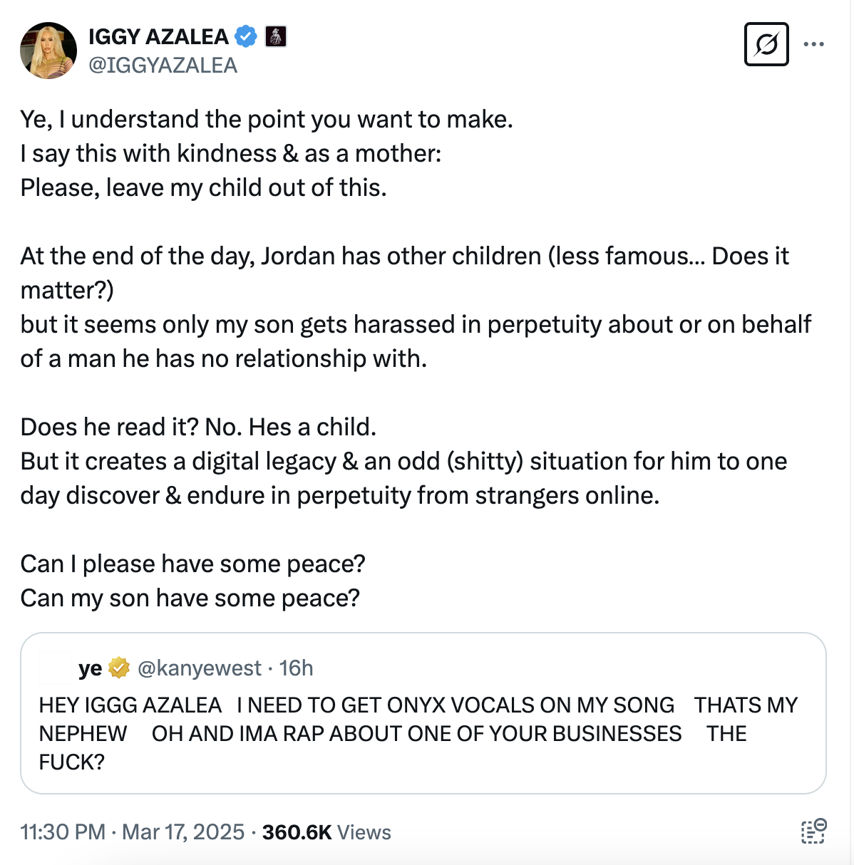 Iggy Azalea a répondu à Kanye West après avoir mentionné son fils au milieu de sa diatribe contre Playboi Carti.