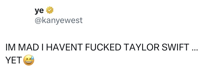 Ye n'a cependant montré aucune clémence à Swift, car il a affirmé choquant que la pop star avait autrefois un trio avec Justin Bieber et Harry Styles – tout en admettant qu'il était «fou» que lui et Swift n'ont pas encore dormi ensemble.