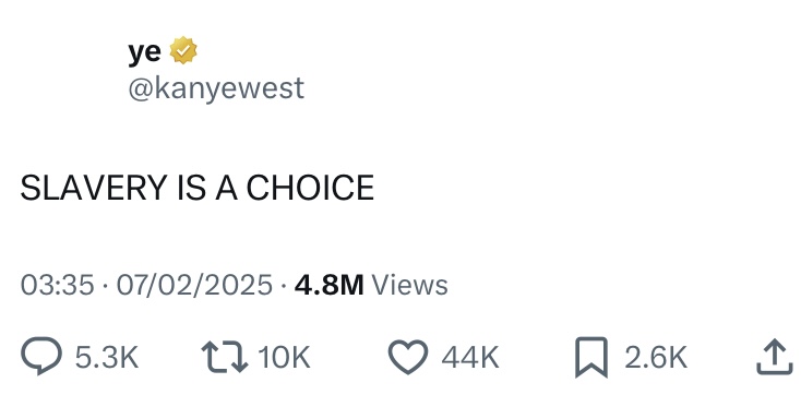 Après avoir répété son affirmation largement critiquée selon laquelle «l'esclavage est un choix», Kanye a détaillé son admiration de Diddy, malgré le fait qu'il l'ait précédemment accusé d'être «nourri».