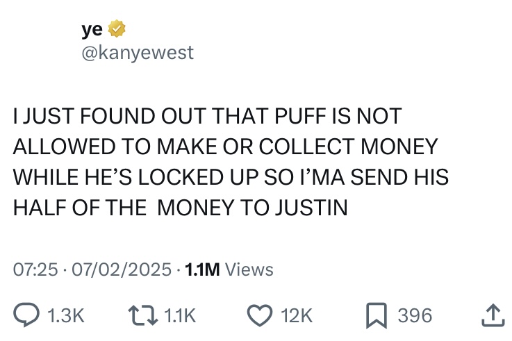 Kanye West est sorti à l'appui de Diddy et a appelé le président Donald Trump à le libérer de prison alors qu'il attend son procès pour trafic sexuel et racket.