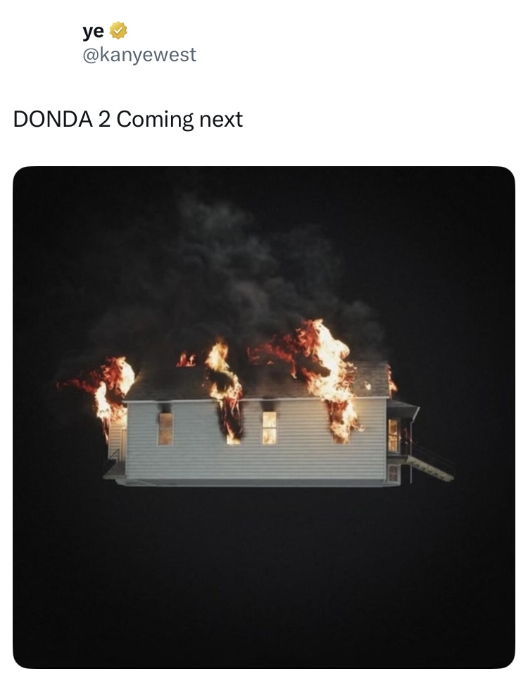 « Donda 2 venant ensuite », a-t-il écrit, se référant au projet depuis son départ qu'il a fait ses débuts en direct en 2022.