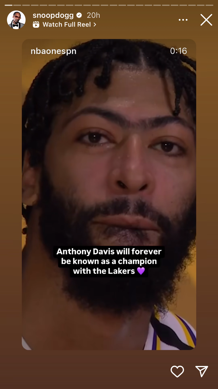 Snoop, un fan des Lakers à vie, a réagi au commerce en rendant hommage à Davis, qui a remporté un seul championnat NBA à Los Angeles